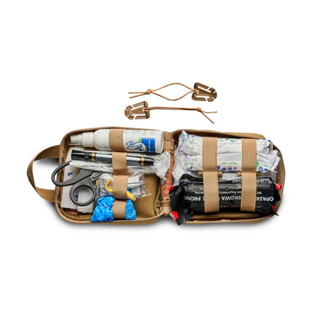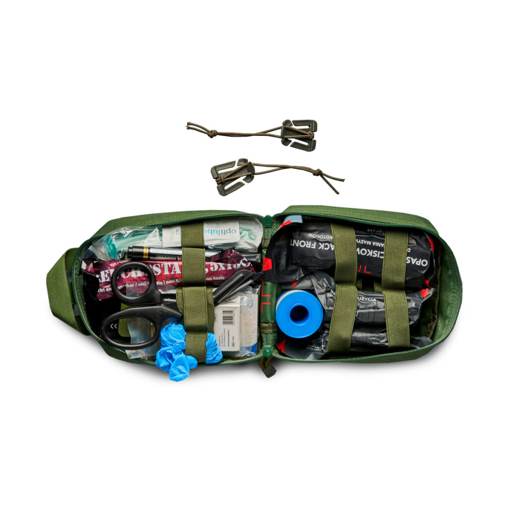 - Apteczka wraz z panelem rzepowym systemu Molle – 1 szt.
